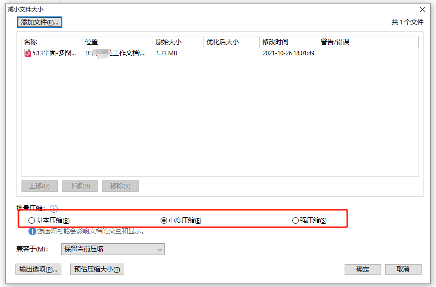 可以選重基本壓縮、中度壓縮、強(qiáng)壓縮。選擇不同,壓縮大小就不同,清晰度也不同,按自己需求來即可。